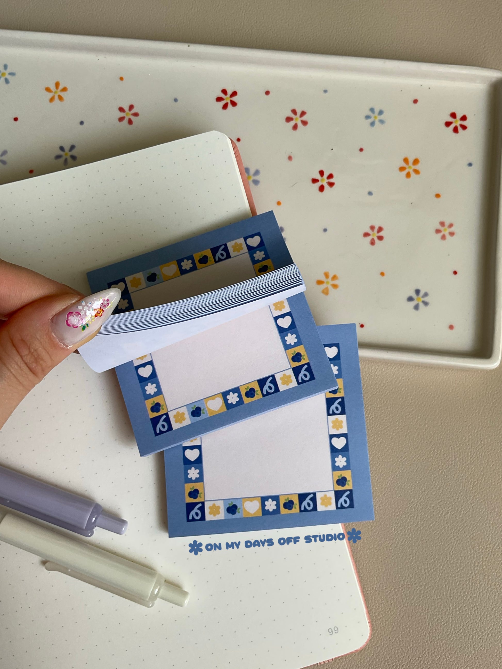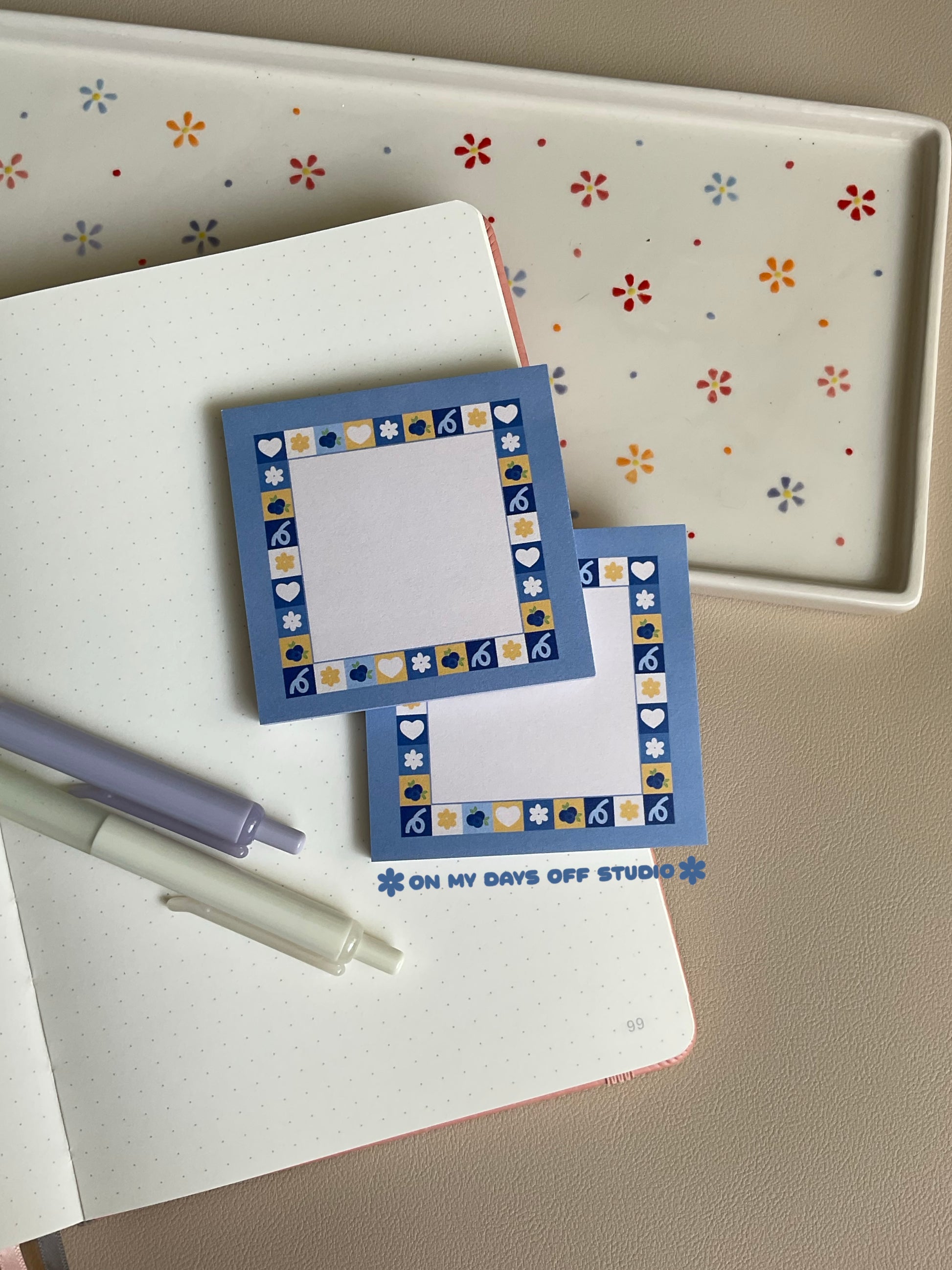 ✿ This adorable sticky note pad features an adorable blueberry, heart & flower border pattern