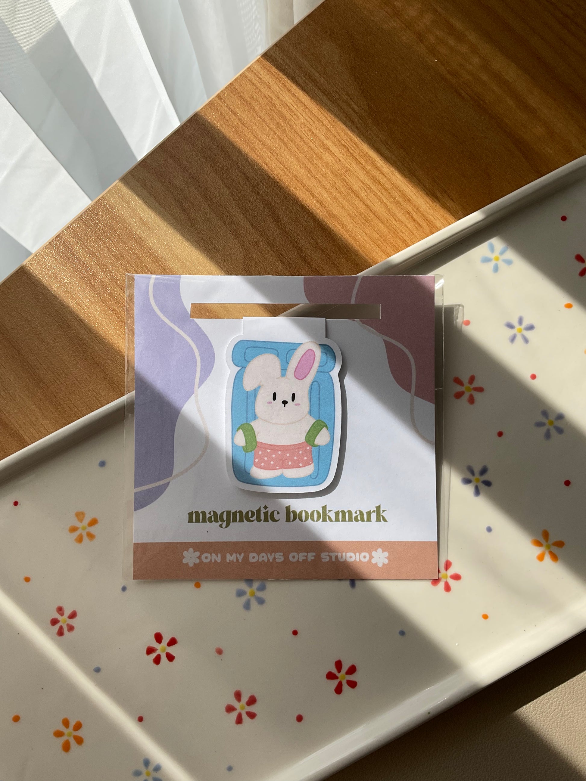 ✿ This cute magnetic bookmark features an cute bunny on a pool float ready for summer!