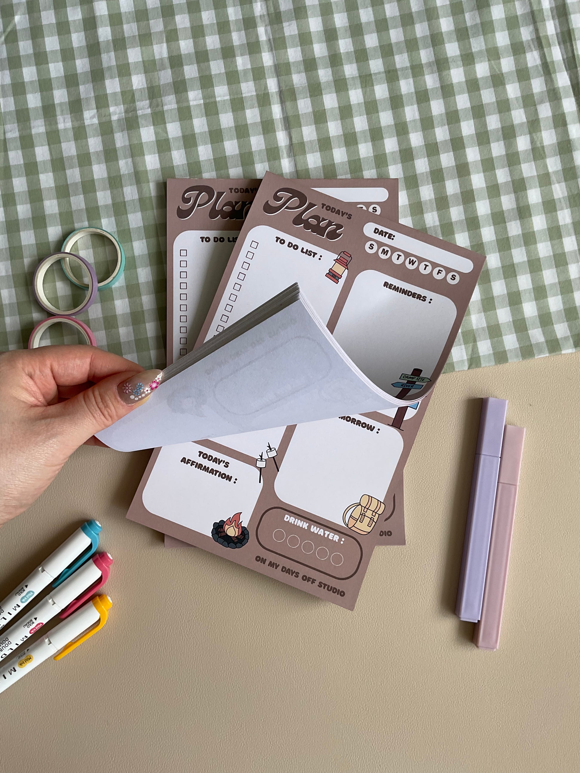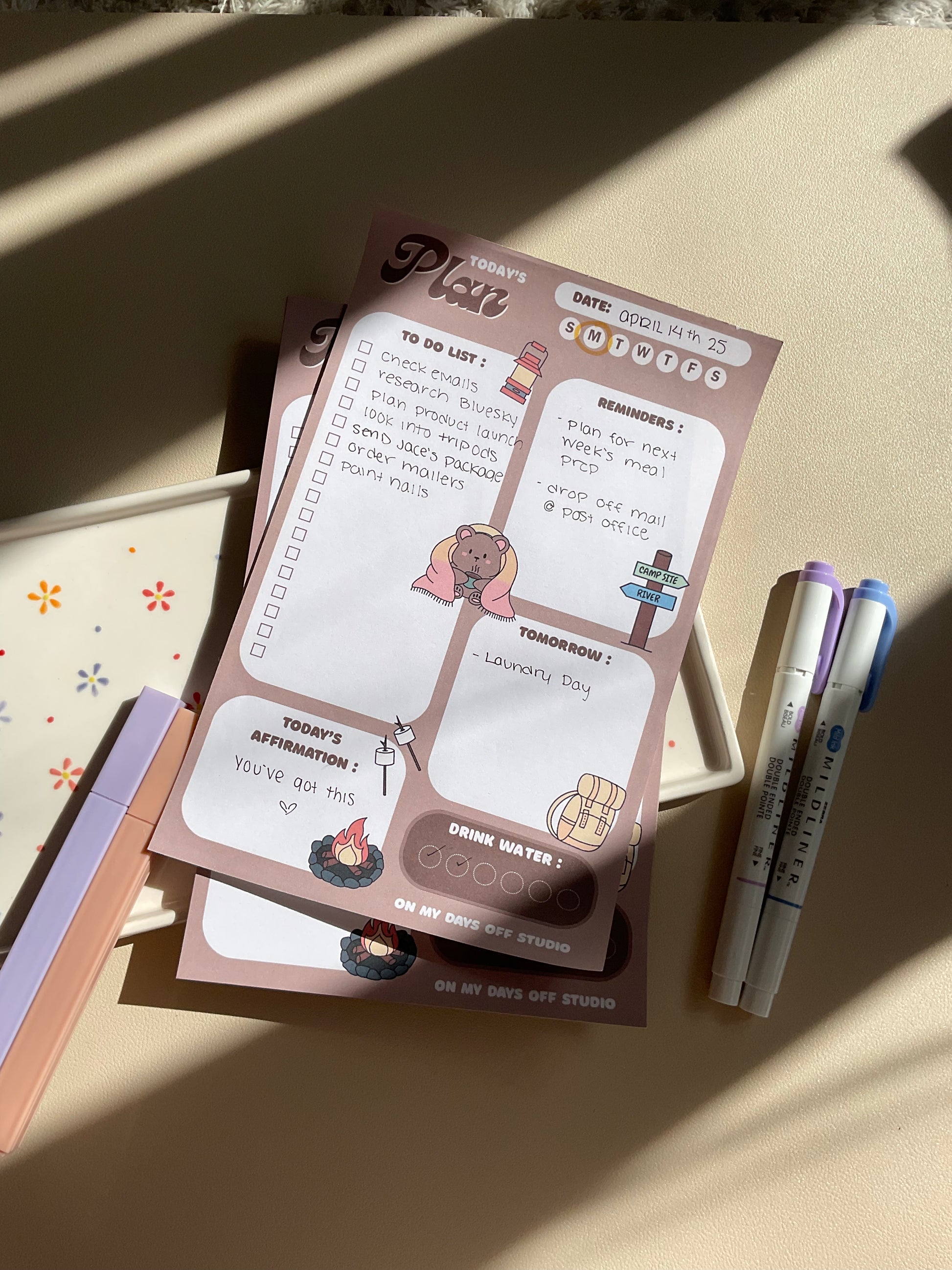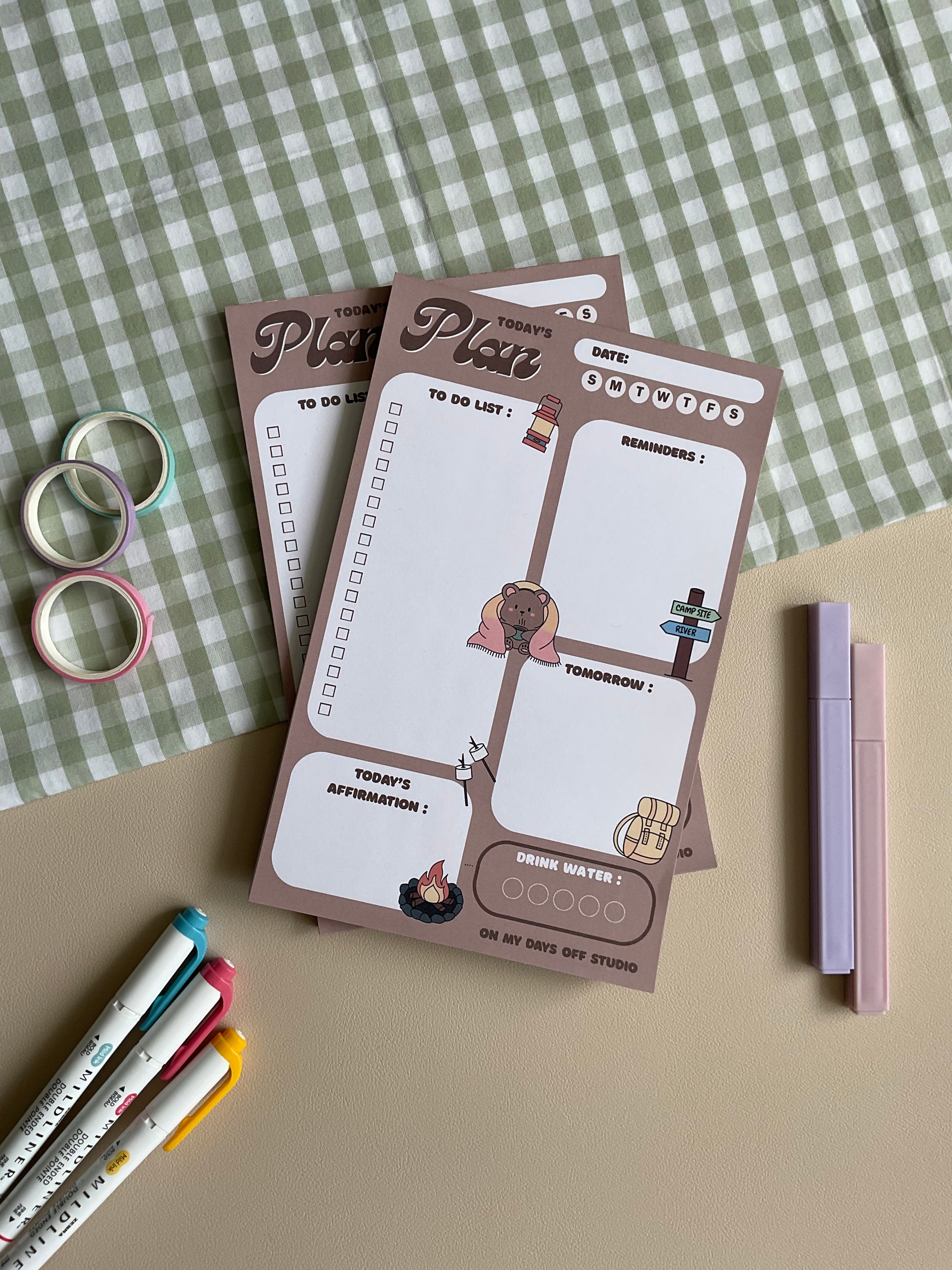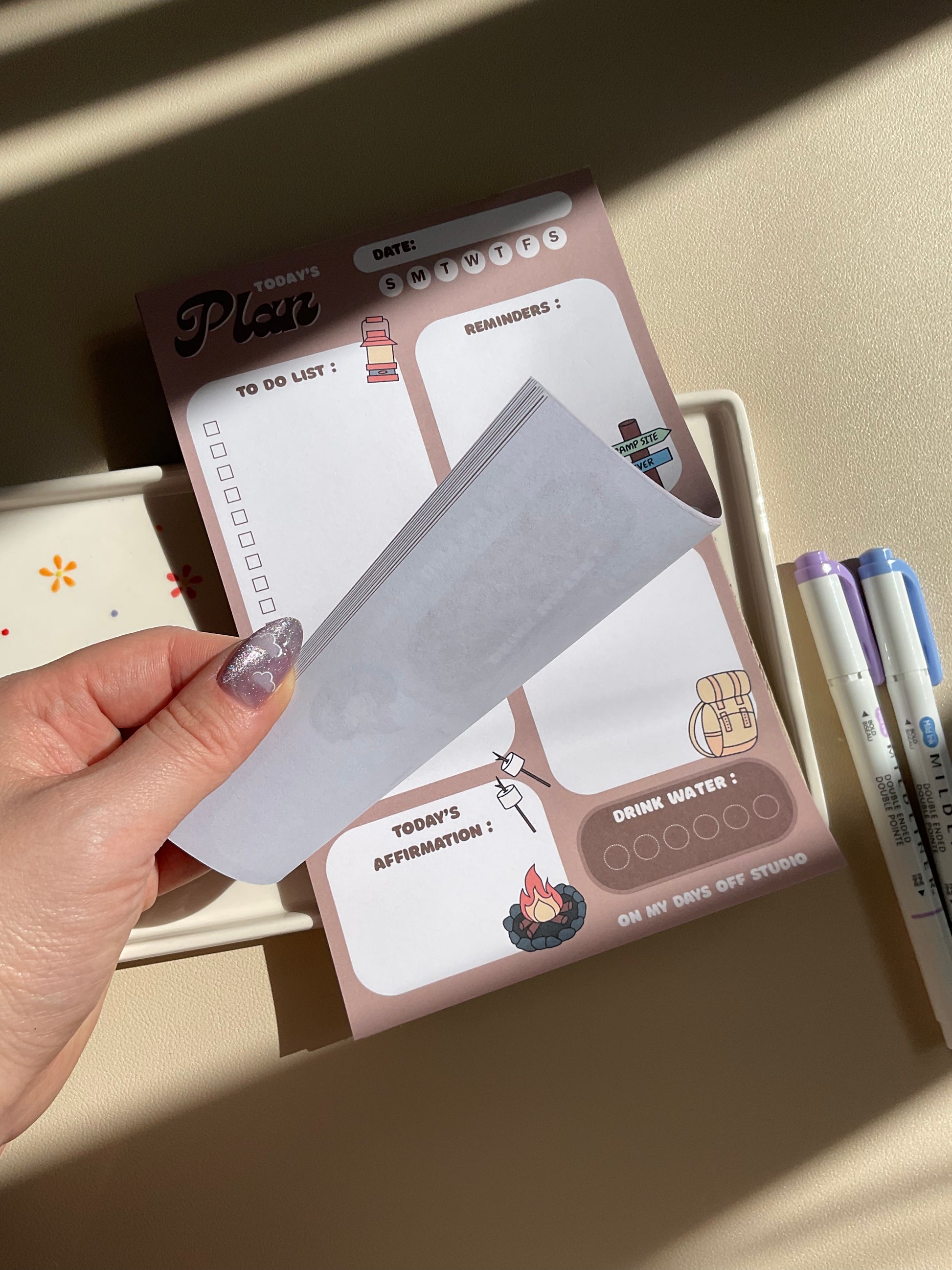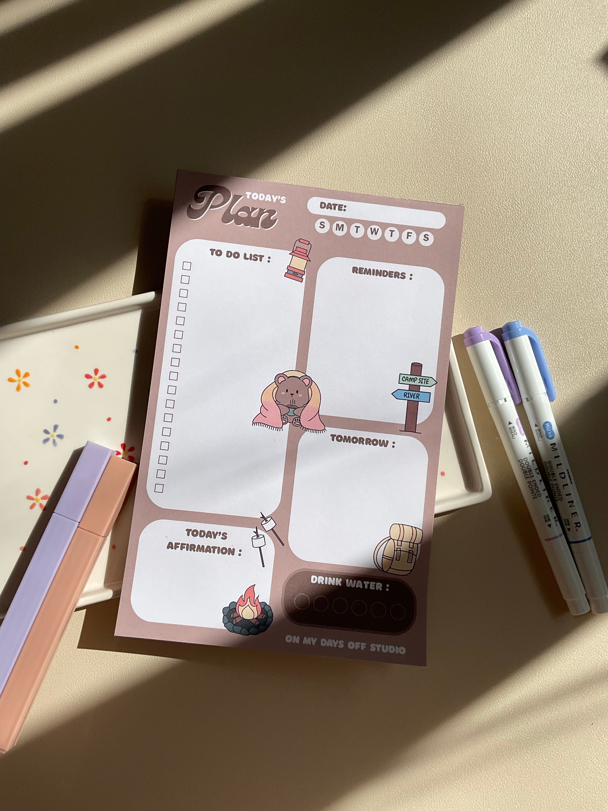 ✿ This cute daily planner notepad features an adorable camp theme. This daily planner notepad comes with 50 sheets for your daily reminders and cute to dos.