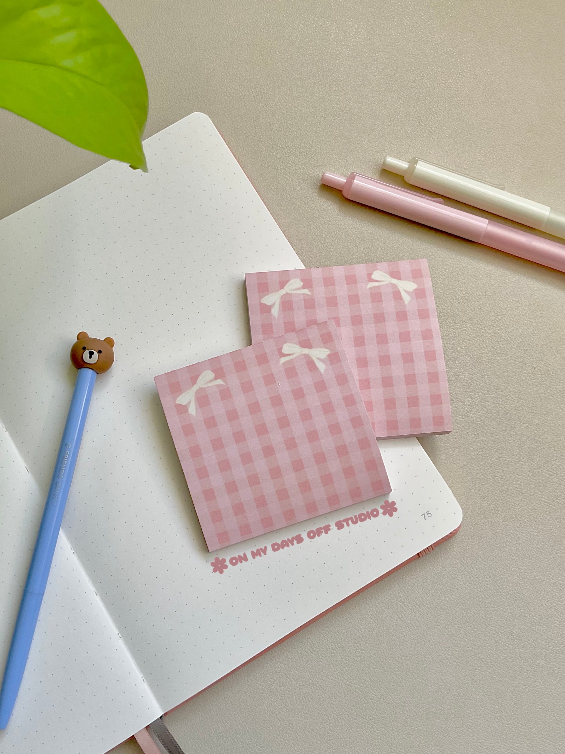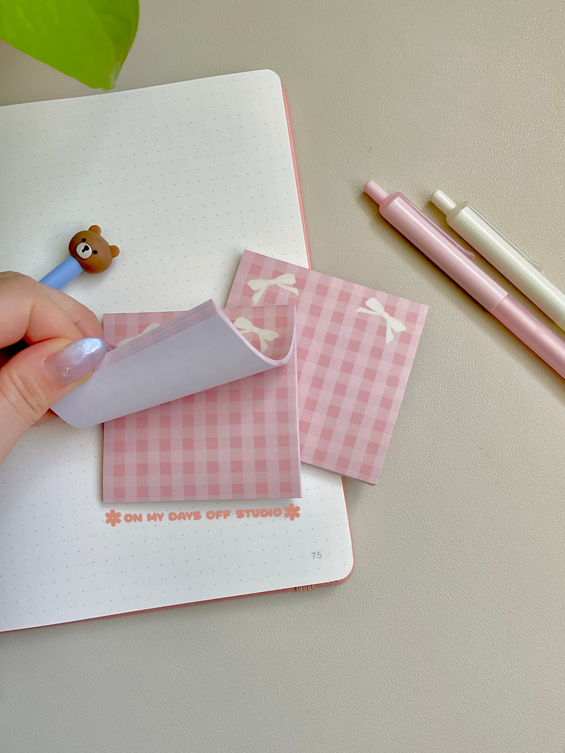 ✿ This cute sticky note pad features an adorable coquette gingham pattern and two cream bows. This sticky note comes with 50 sheets for your daily reminders and cute to dos.