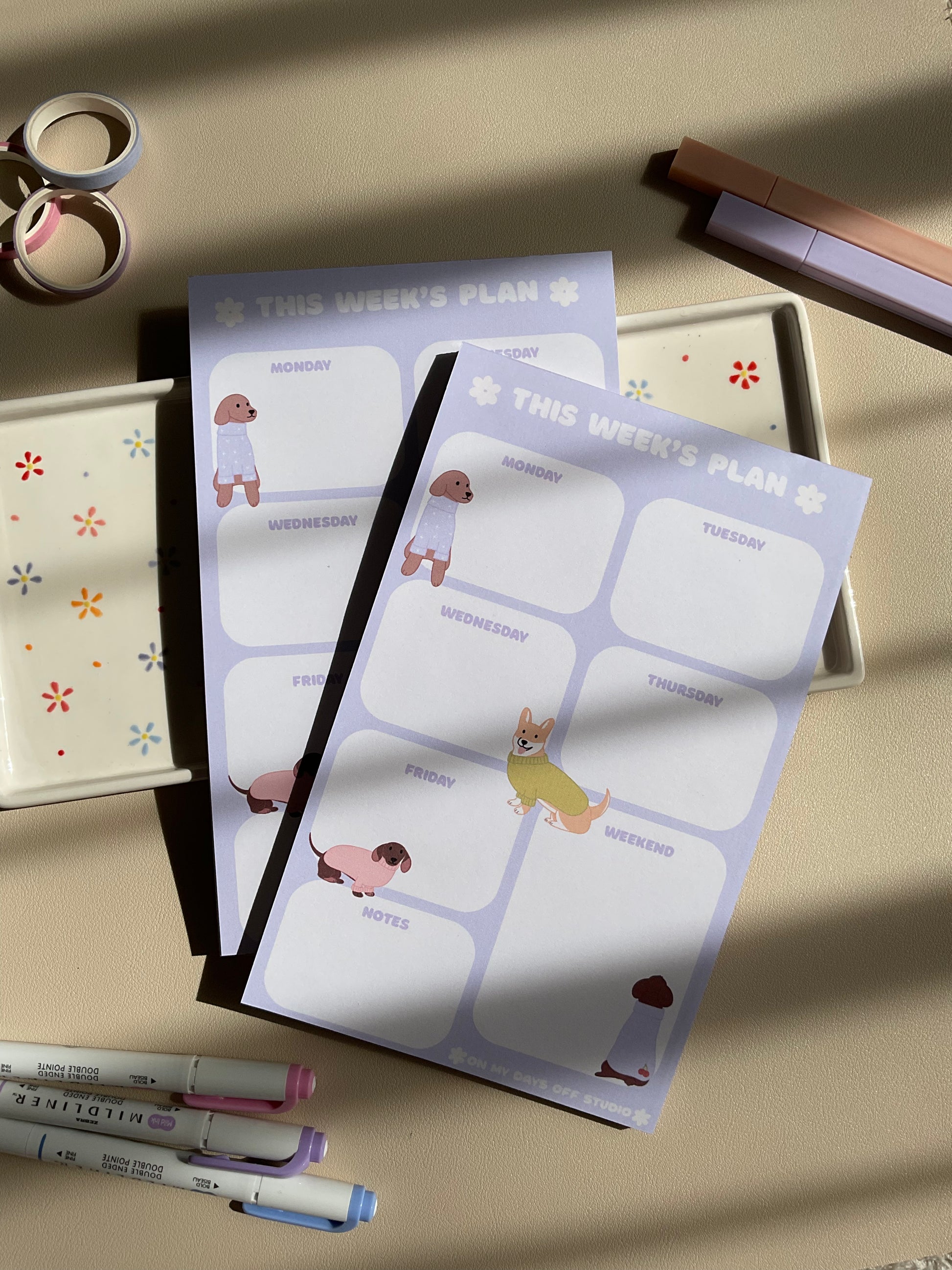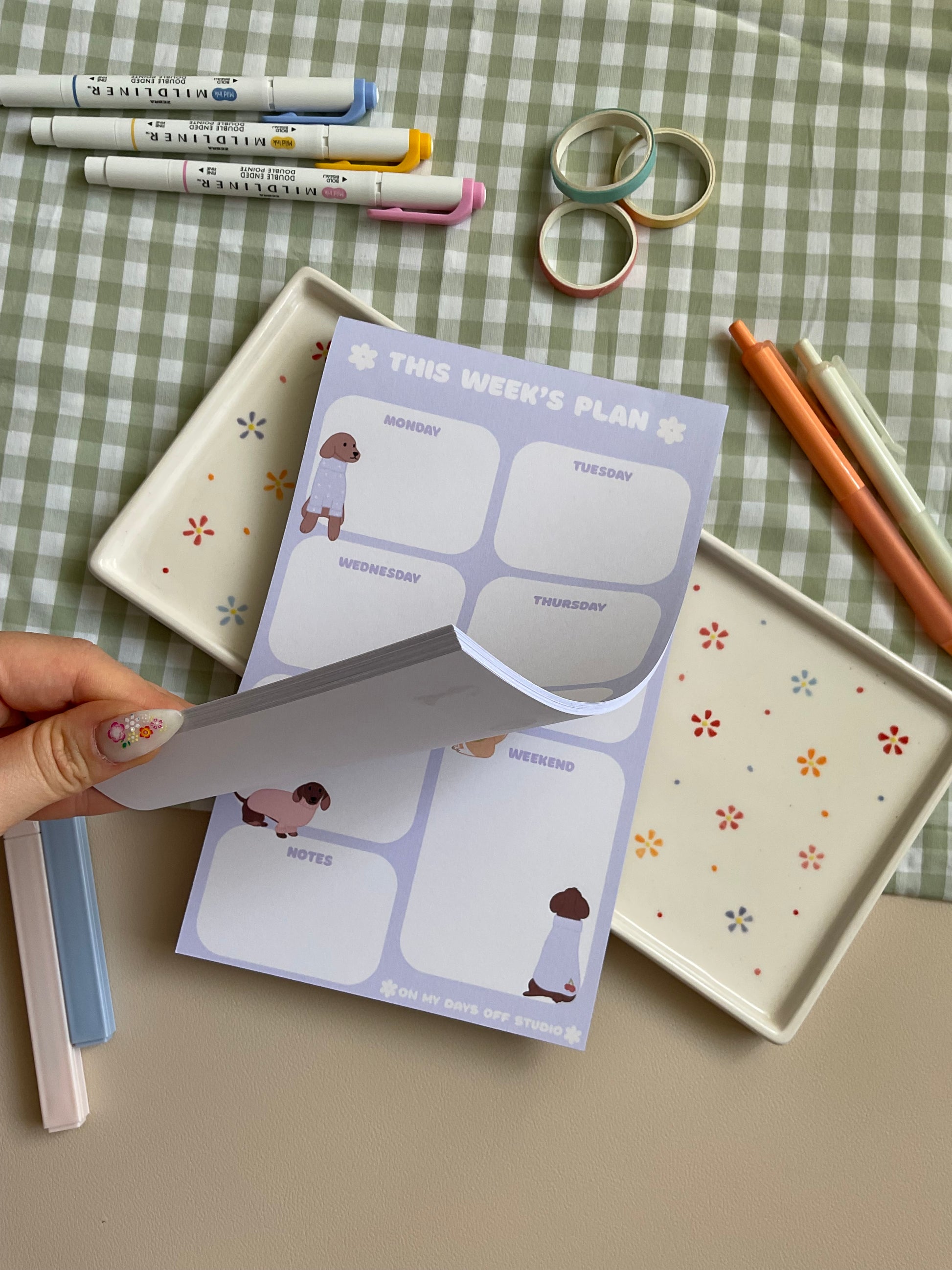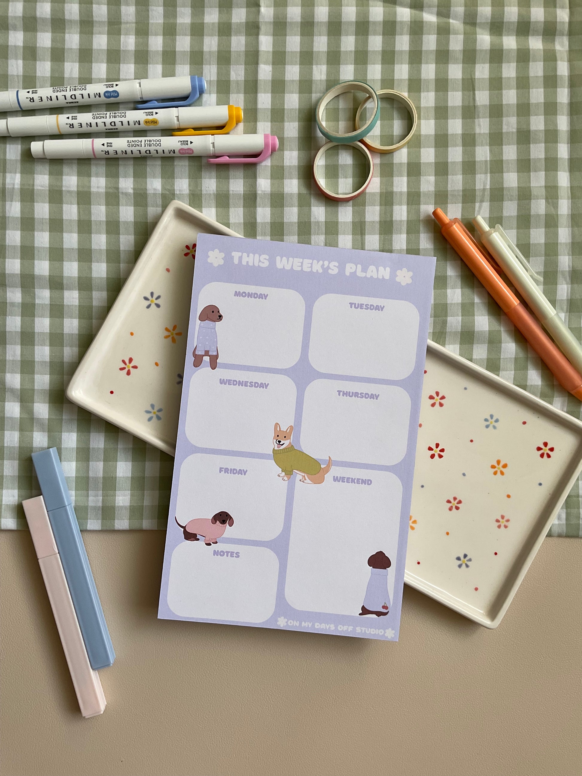✿ This cute weekly planner notepad features an adorable dogs in sweaters theme. This daily planner notepad comes with 50 sheets for your daily reminders and cute to dos.