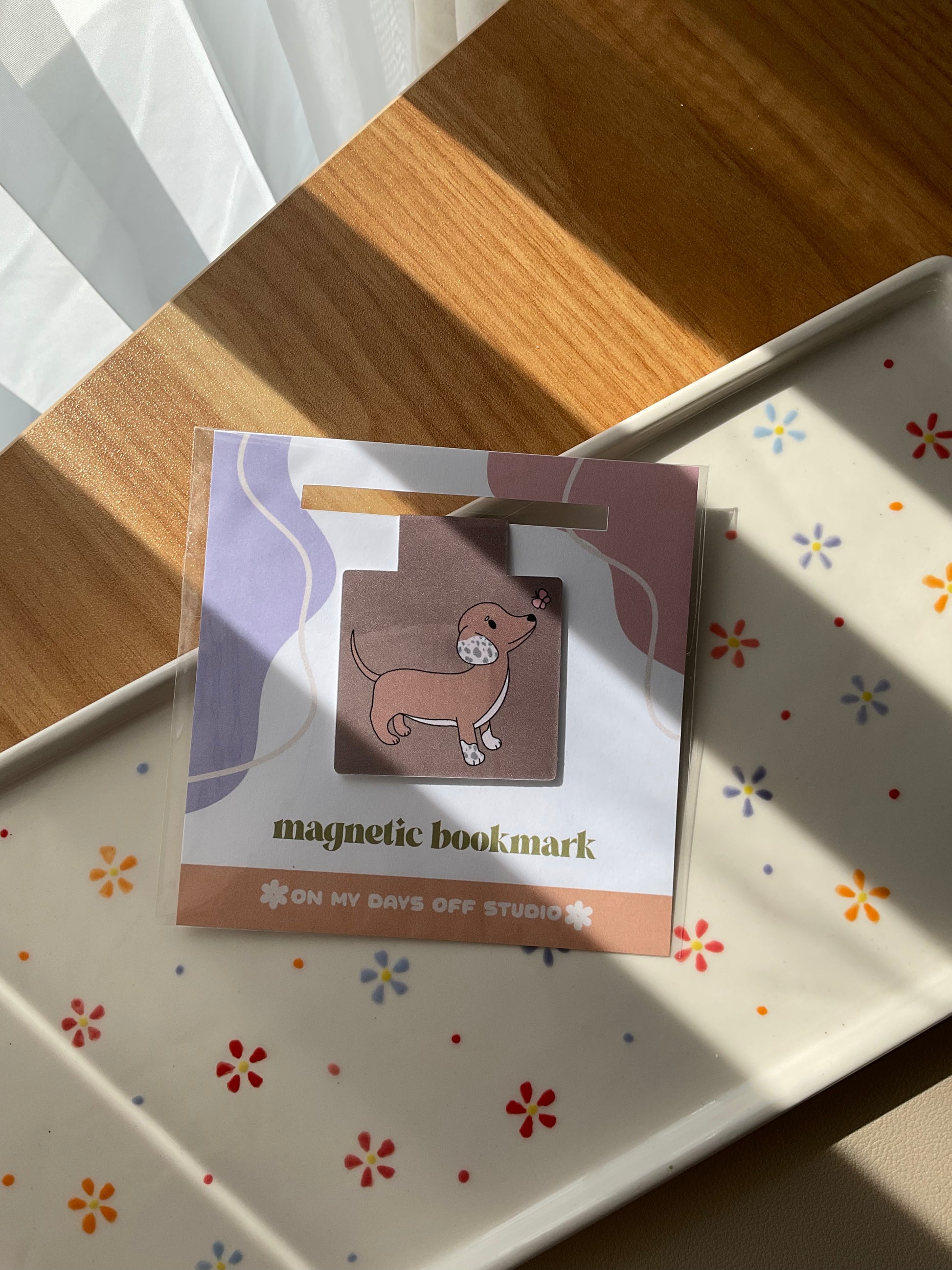 ✿ This cute magnetic bookmark features an cute dachshund pup.