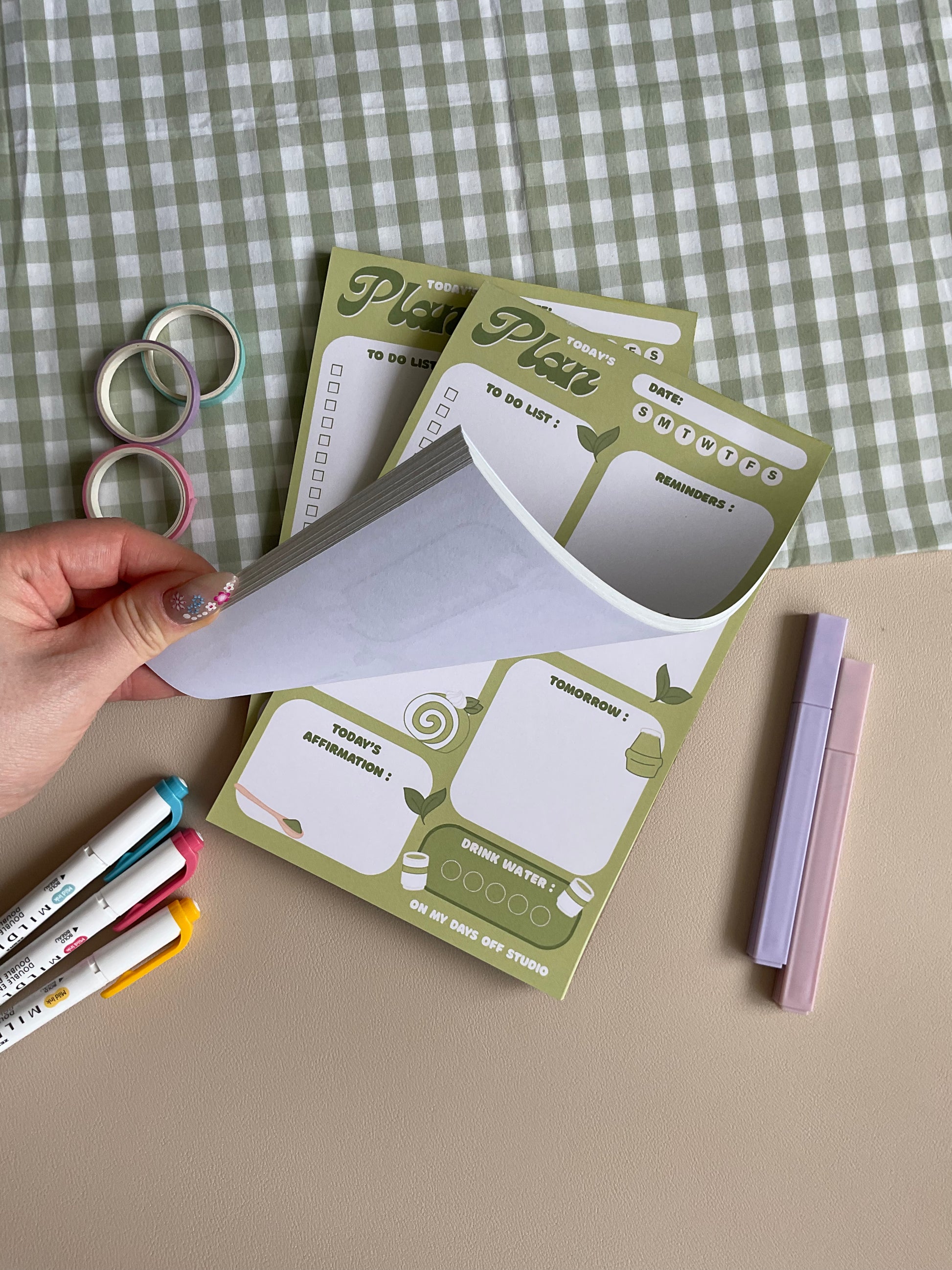✿ This cute daily planner notepad features an adorable matcha theme. This daily planner notepad comes with 50 sheets for your daily reminders and cute to dos.