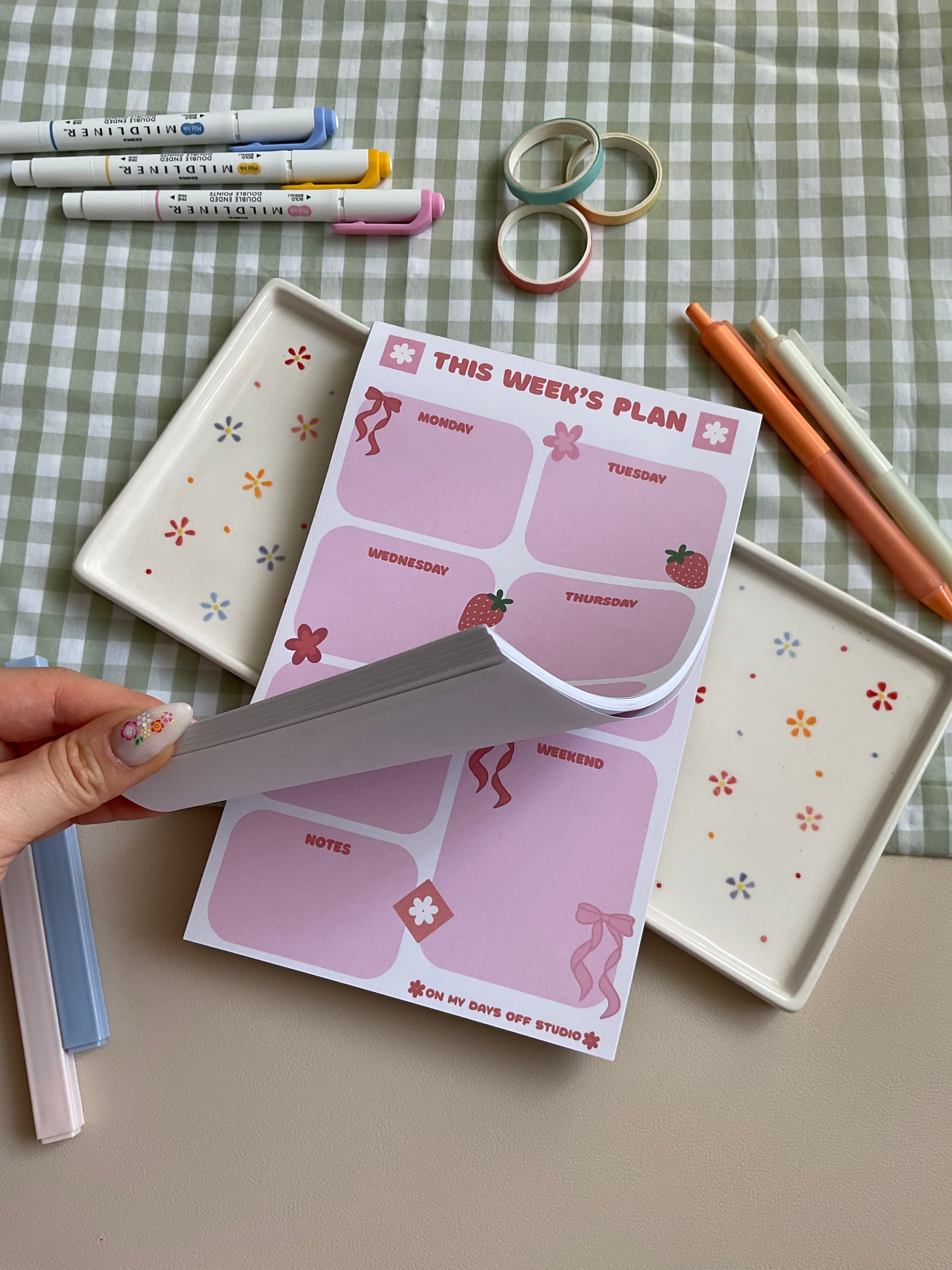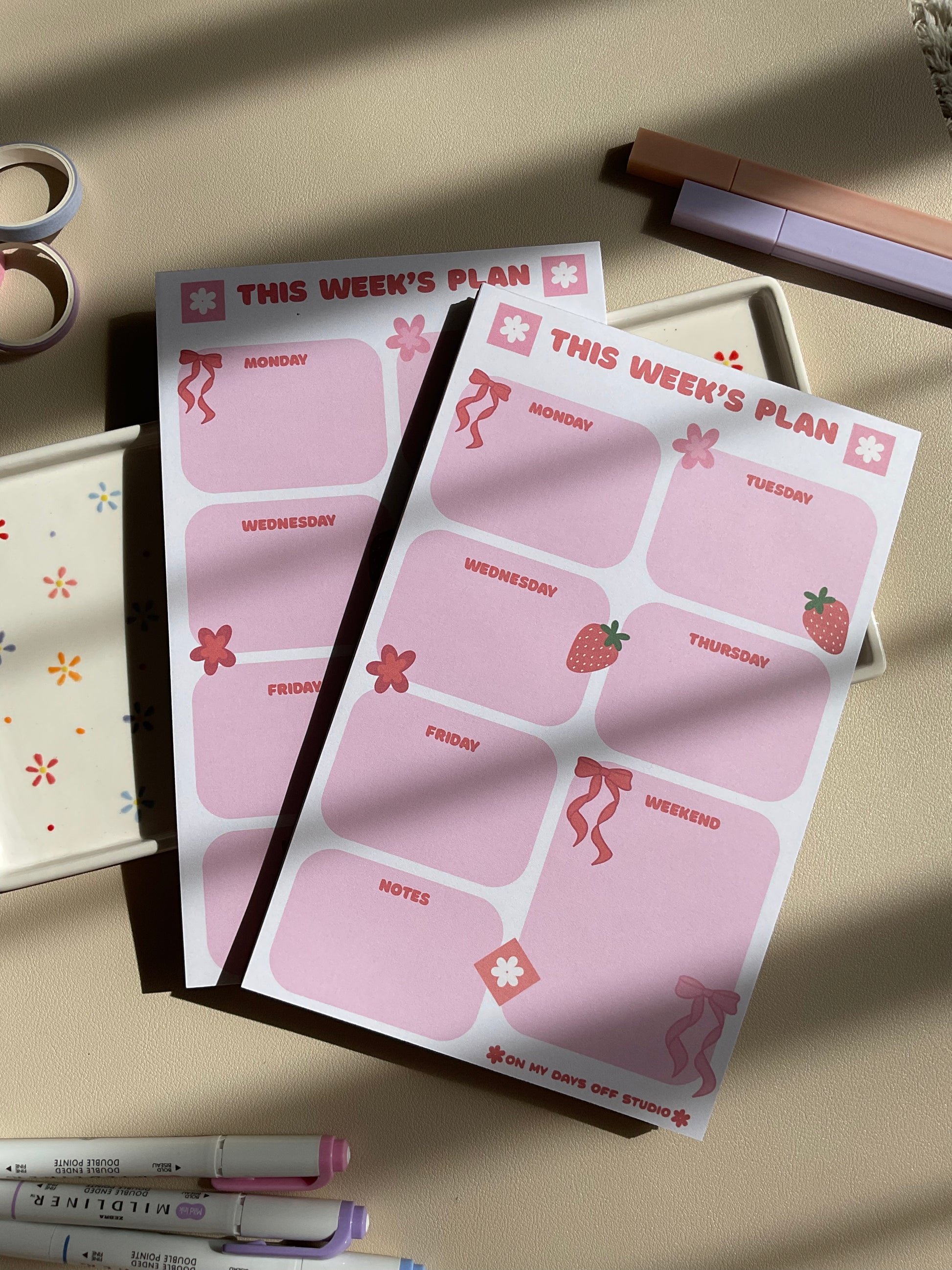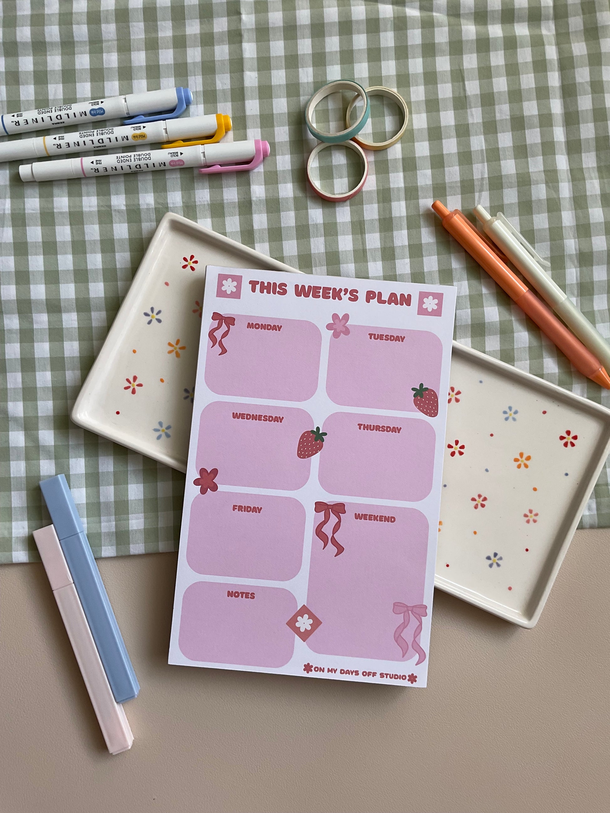 ✿This cute weekly planner notepad features an adorable strawberry & flower theme. This daily planner notepad comes with 50 sheets for your daily reminders and cute to dos.