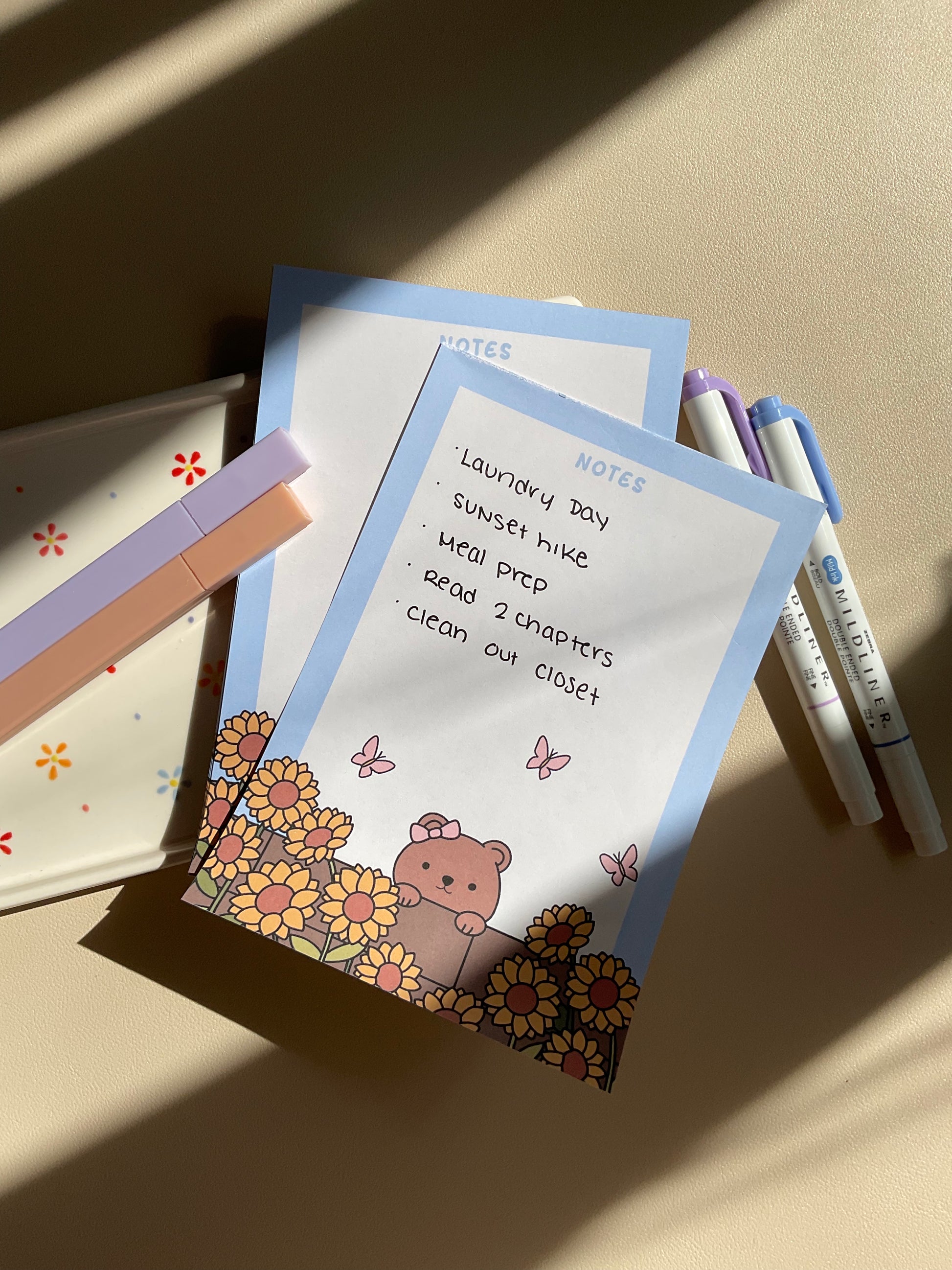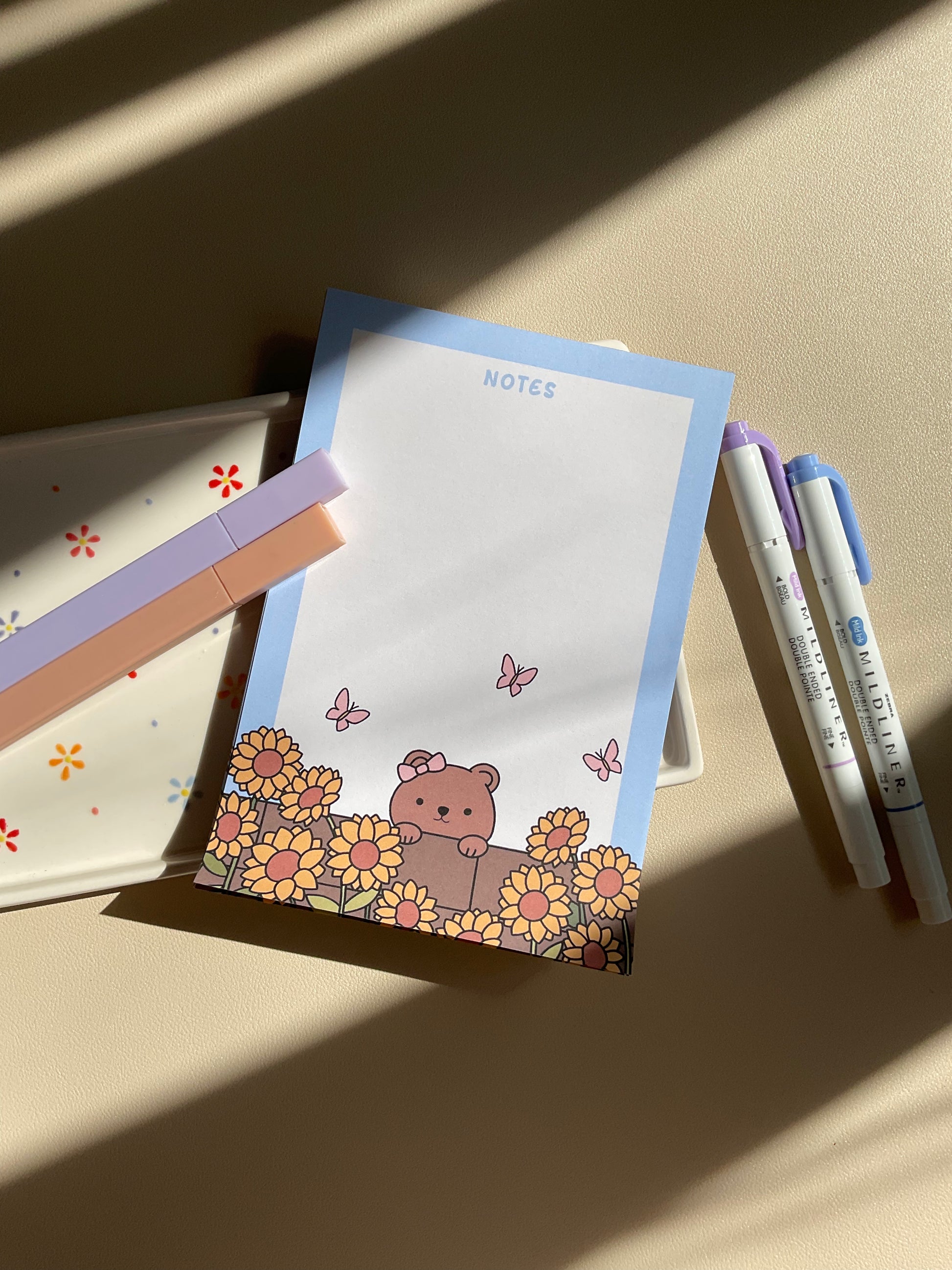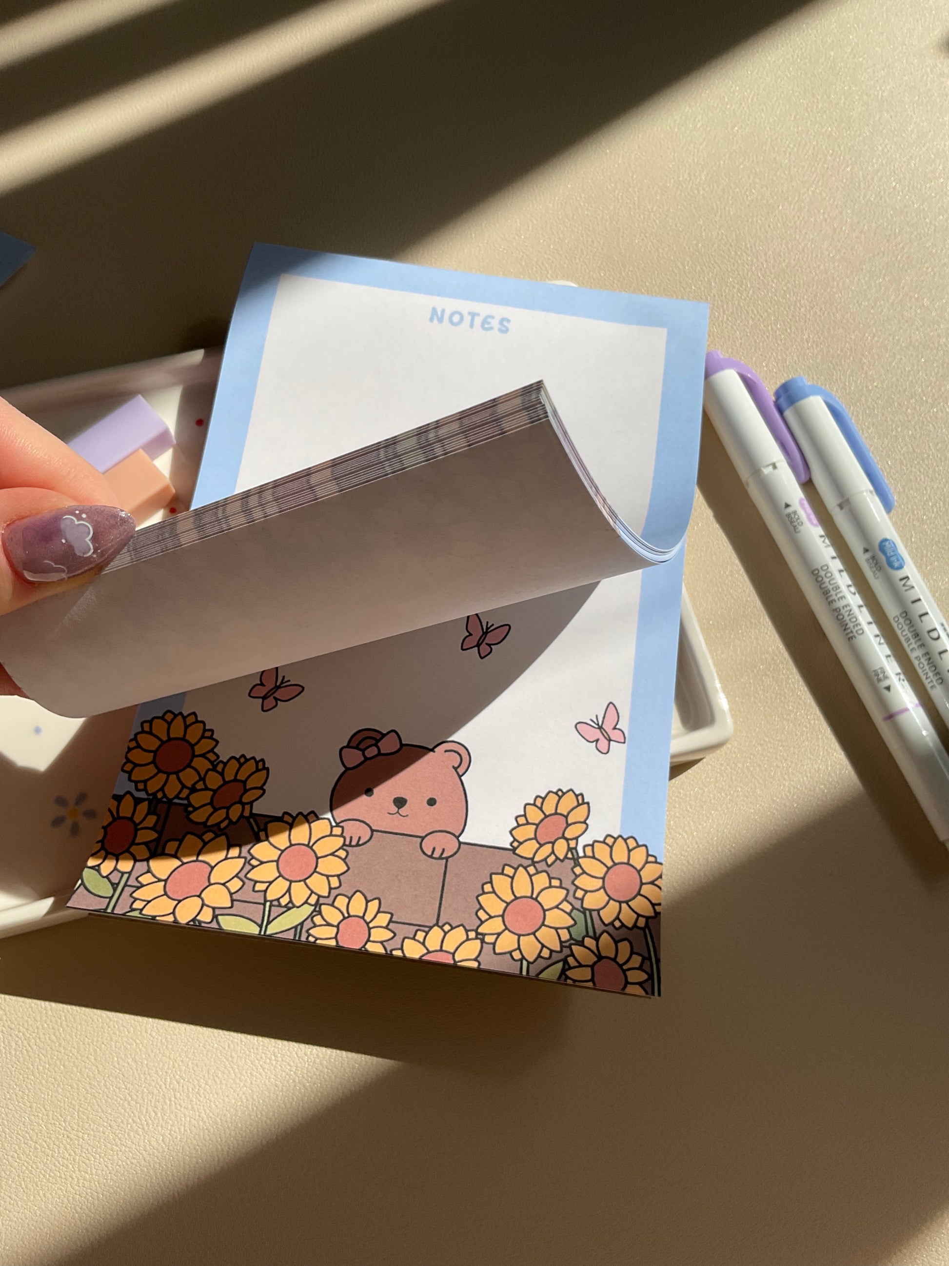 ✿ This cute notepad features an adorable bear & sunflower theme. This notepad comes with 50 sheets for your daily reminders and cute to dos.